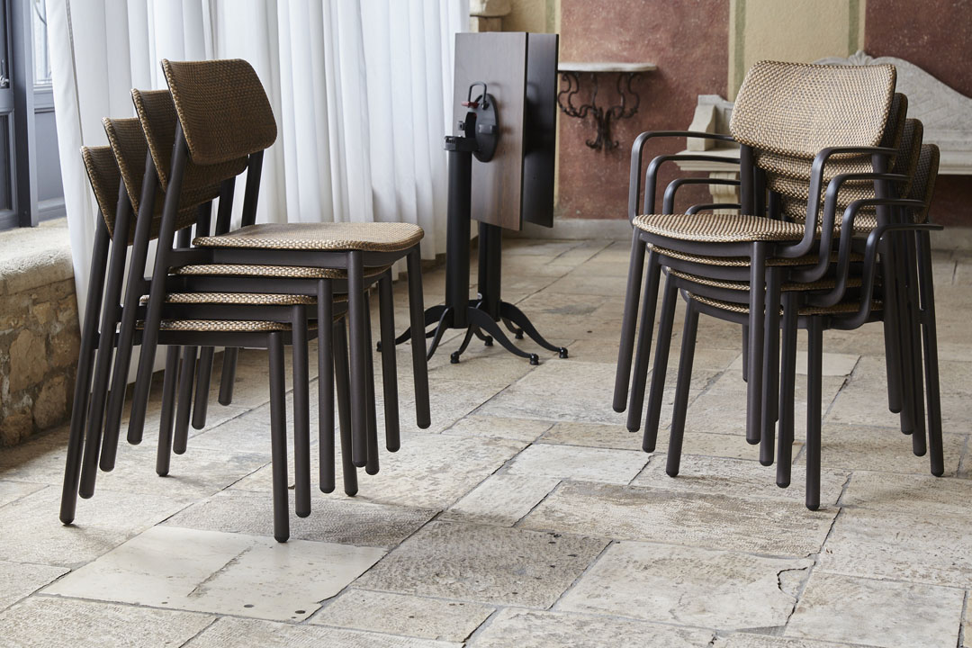 Linea STAR, sedia e poltrona in alluminio lavorate in Italia da ANTIGA OUTDOOR FURNITURE.